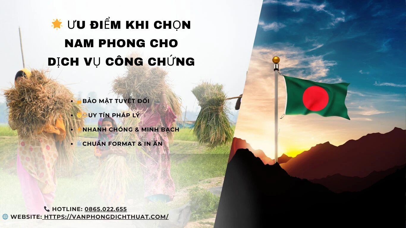 Văn Phòng Dịch Thuật Nam Phong cung cấp dịch vụ dịch công chứng tiếng Bangladesh uy tín, nhanh chóng và bảo mật. Hotline: 0865.022.655