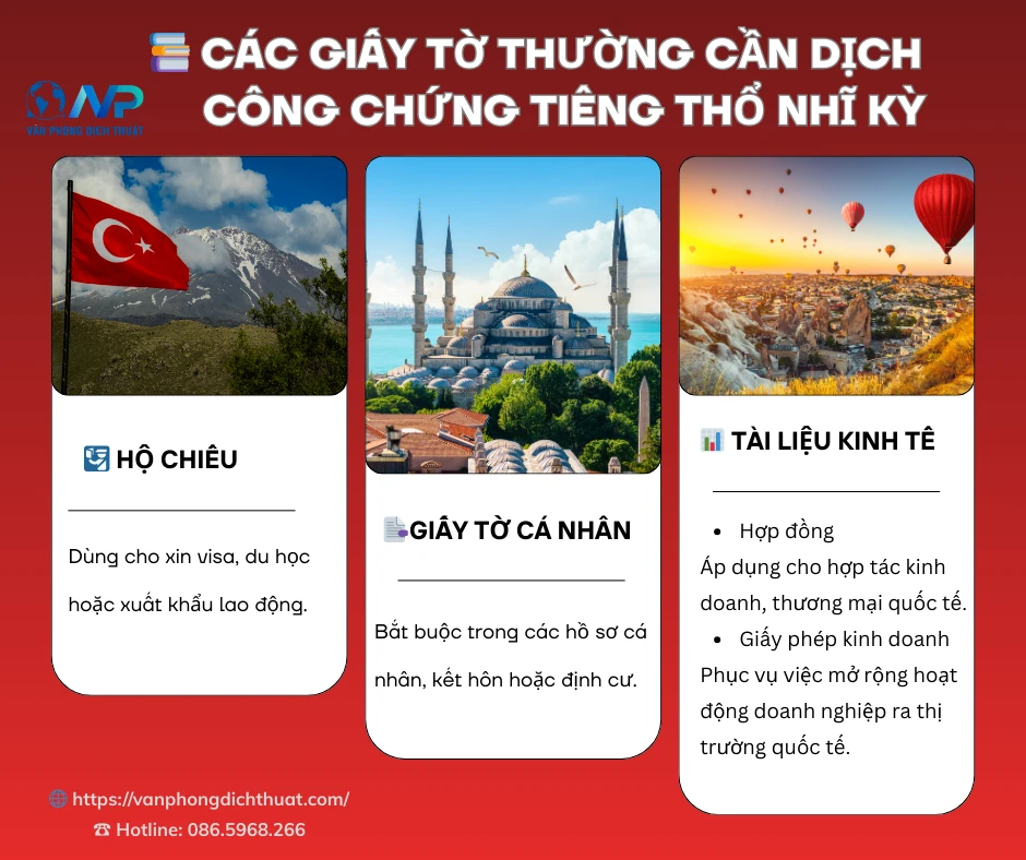 Dịch công chứng tiếng Thổ Nhĩ Kỳ thường được yêu cầu trong các trường hợp sau: